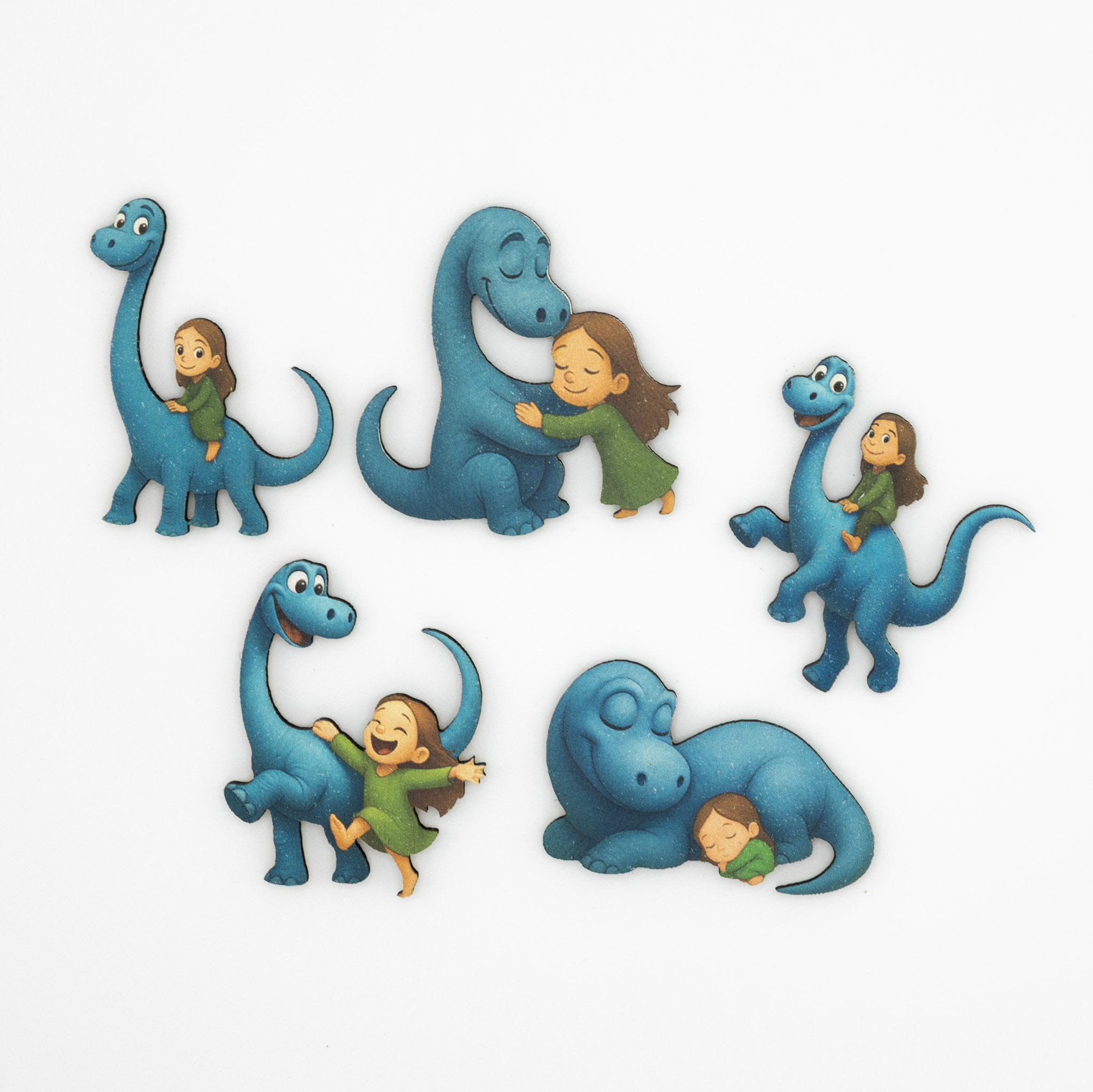 Het meisje en de blauwe dinosaurus beleefden samen elke dag kleine avonturen vol knuffels, lachen en ritjes. Aan het einde van de dag vielen ze rustig samen in slaap, wetend dat ze altijd op elkaar konden rekenen.