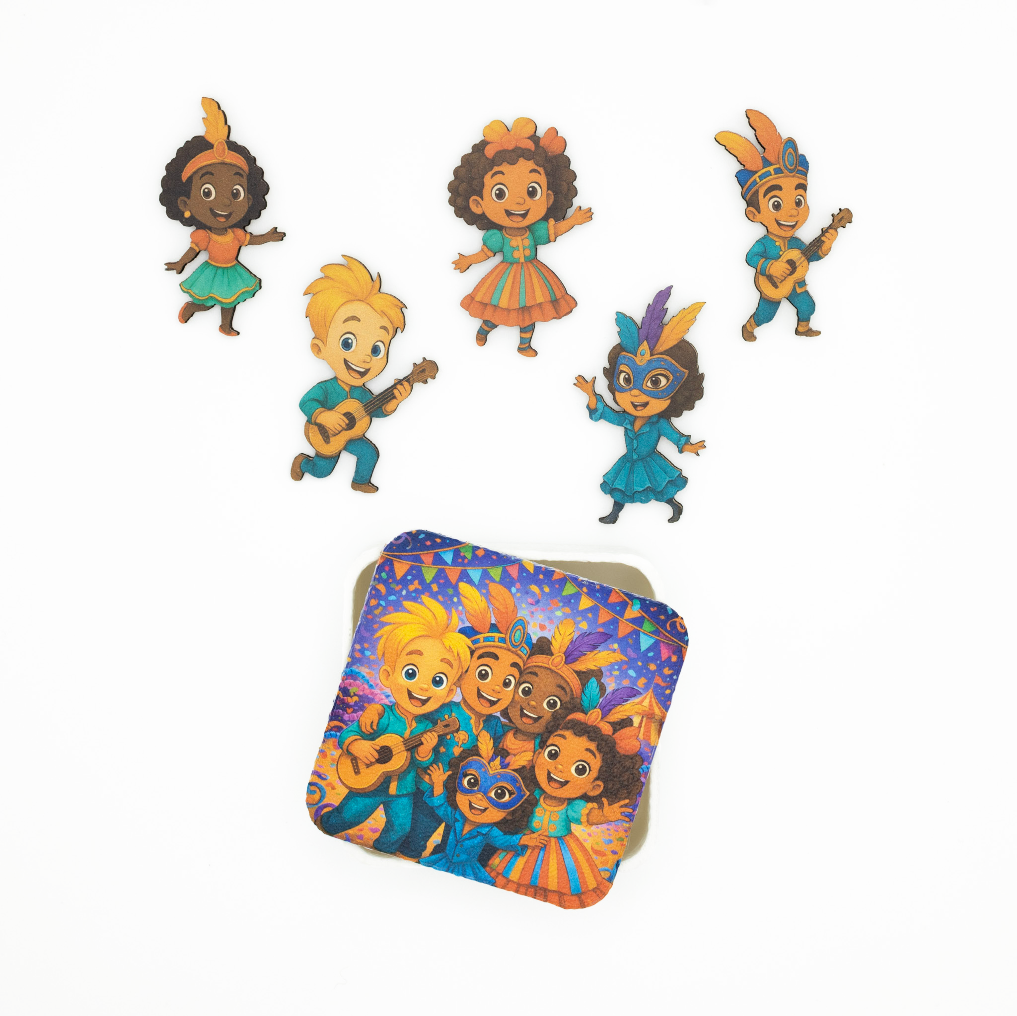 Deze vrolijke magneetjes vertellen samen een klein feestelijk verhaal vol dans, muziek en fantasie. Elk figuurtje straalt plezier uit en brengt een warme, speelse sfeer in huis.